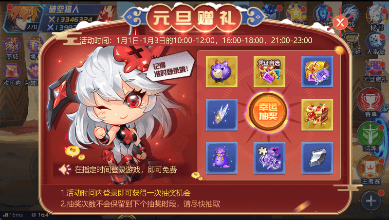 270级圣·裂穹装备、265级圣·镇魂饰品、265级圣·莽荒装备、40级源力核心、幸运源石礼包、1级龙神宝石(绑定)、定制零件、外动力组件、寒冰王座碎片、欢欢飞艇碎片、养魂木、聚宝金等豪华奖励邀你抢。