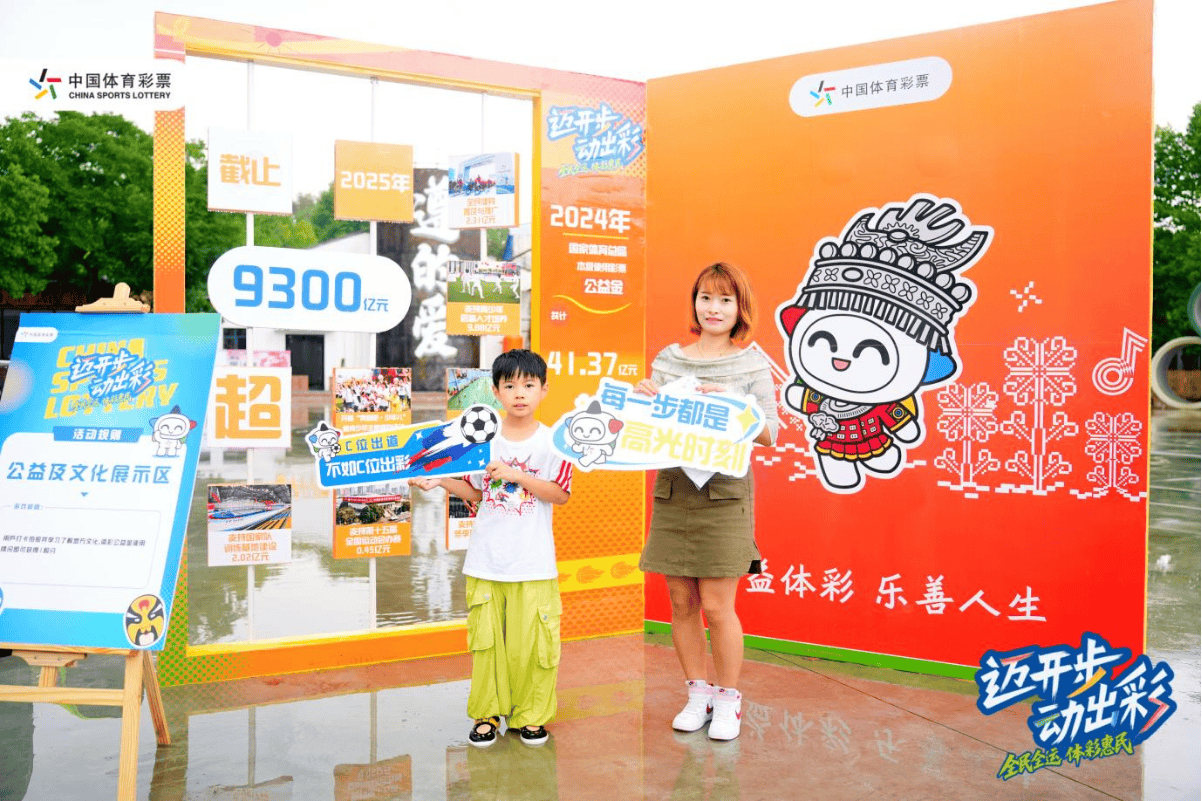 在“公益及文化展示区”,贵州本土非遗元素与体彩公益金使用成果相映成趣。通过“翻翻乐”互动装置,市民可以直观了解到体彩公益金如何支持当地社区体育公园建设、资助青少年体育培训、助力全民健身赛事开展。