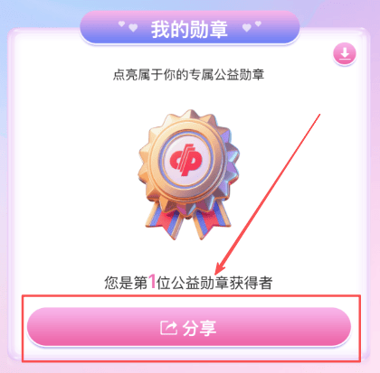 在观看城市直播时,点击下方爱心图标,即可“点亮爱心”,为福彩公益点赞。点击页面核心“勋章按钮”,还可触发动态勋章特效,获取专属您的公益勋章。欢迎大家将您的公益勋章分享至微信好友或朋友圈,邀请更多人关注公益、参与公益!