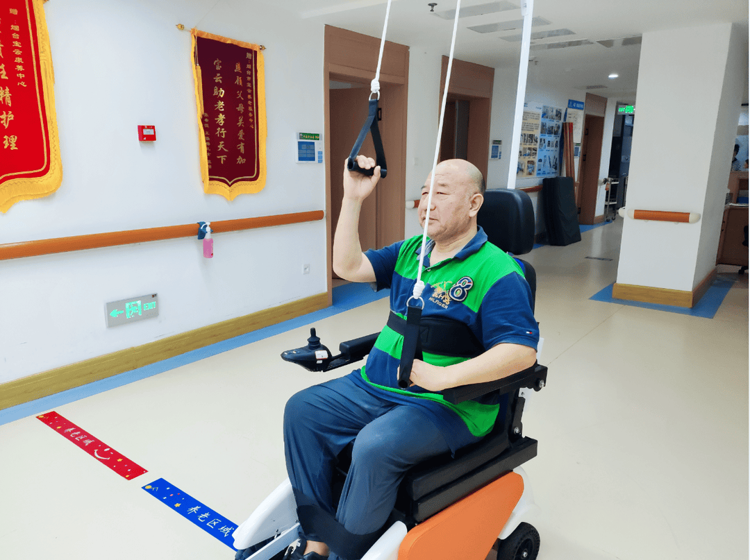 60岁的孙永政是这份支持的直接受益者,脑梗后遗症导致他右侧肢体动不了,“刚来宝云那会儿,右边胳膊根本抬不起来,连自己端碗吃饭都费劲”。如今在康复治疗师指导下,他每天用康复机器人做偏瘫肢体训练,还能免费使用站床、脚踏车锻炼,“现在胳膊能慢慢举到胸口,走路也稳了,总算觉得康复有盼头了”。