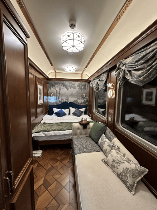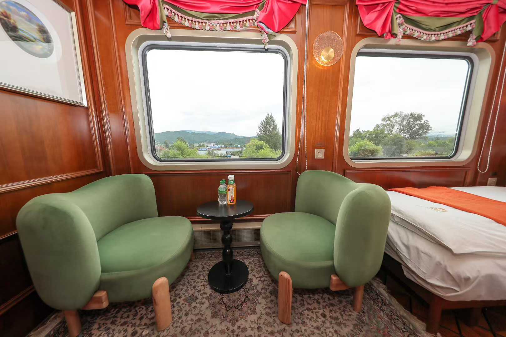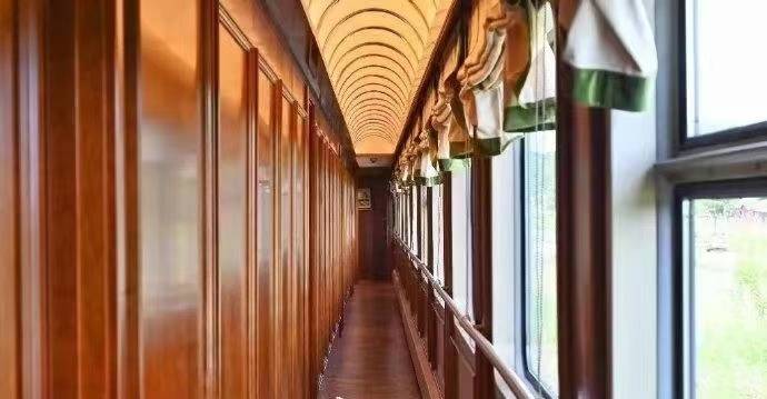 编组与载客量:全列15节车厢,包括7节功能车厢(酒吧、中西餐厅、茶室、会议室、特色产品展厅、儿童游乐室、图书室、医疗室)和7节载客车厢,另设1节发电车。全列仅限60名旅客,确保服务私密性与品质。