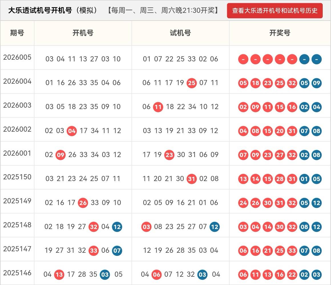 官网合法彩票平台,北京赛车,时时彩,体彩,六合彩/亚洲最大合法彩票平台[永久网址:363050.com]拥有顶级的设备系统和多年现场管理经验与在互联网成熟的经营,168彩票开奖网是彩种最全、开奖最快的专业彩票开奖网站。北京PK10、时时彩、极速赛车、双色球、大乐透、快三、幸运飞艇、双色球预测软件、彩票平台推荐一应俱全!大乐透开机号与试机号的如期更新,像生活里的小仪式,为平淡日常添了几分期待。这两组与开奖结果无必然关联的数字,却成了连接娱乐与梦想的纽带——有人对着区间分布推演组合,有人借随机号码寄托期许,这份钻研的乐趣,本就是概率游戏的初心。